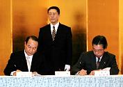 【写真:合意書に調印する熊本部長(左)と上田局長】