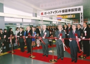 《「神戸空港への足」発車 矢田市長ら約350人が祝う》 今月16日に開港する神戸空港への交通アクセスとなる神戸新交通ポートアイラ ンド線延伸部の「開通式典」が1日、神戸空港ターミナルビルで開催された。 式典には事業主体である神戸市の矢田立郎市長並びに神戸新交通(株)の横田 忠男社長及び、地元・工事関係者ら約350人が出席して開業を祝い合った。ま た、工事関係者に対する感謝状贈呈式と列車の発車式が行われた。なお2日に は、営業運転に先立って営業始発式が行われた。 午前11時からターミナルビル2階の出発ロビーで行われた式典では、初めに主 催者を代表して矢田市長が式辞を述べた。矢田市長は、今回の開通について 「神戸空港の開港による交通需要に対応し、ポートアイランドの利便性を高 め、沿線地域の活性化に寄与するもの」とし、今後同線が「地域に親しまれ、 安全で快適な公共交通機関として発展していくことを期待する」と挨拶、アク セスとしての期待を寄せた。 《神戸市全体の発展に貢献するものへ》