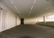 【写真上は木津地方合同庁舎の外観、写真下はハローワークのフロア】 一方、地域の顔として親しまれていく環境配慮型官庁施設(グリーン庁舎)の施工を担当し、高品質に完成さ せたのは(株)地崎工業。空橋進所長をはじめとする同社ならびに各協力会社の精鋭スタッフが一丸となって 土地区画整理事業の先駆けとなる合同庁舎建築工事に挑み、多くの関係者から寄せられていた信頼に応える高 品質施工を全工期無事故・無災害で達成した。 その工事は、敷地内において進められていた木津町下水道工事が完了した後の昨年4月から本格化。地盤改良 杭・山留め杭の施工を同月末まで続け、5月に入ってからは掘削ならびに基礎躯体工事を推進した。埋め戻 し・土間コンクリート工事が6月末に完了してからは、躯体工事に着手。9月中旬に打ち上げを無事に果た し、床・天井仕上げ工事、塗装工事についても年内一杯で完了するに至った。外構工事は、11月から雨水配管 工事を進め、今年の1月初旬には舗装工事も完了。3万2,000時間におよぶ全工期無事故・無災害のうちに竣 工を迎えた。 この間、(株)地崎工業では、タイル施工における面精度と接着力の確保などに留意した品質管理を徹底して 高品質を確保。また、駅前工事に起因する種々のネックを克服するための対応にも万全を期していた。そのう ち、敷地西側道路面の仮囲いについては、危険防止の観点から高さ3mの万能板を設置。しかも、学生や会社 員の通学・通勤路となっているこの道路の周辺は、街灯が少なく、薄暗いため、万能板が通行人に圧迫感を与 えないように、樹木をパンチング加工したものを使用し、夜間には場内からの照明によって光の樹木を浮かび 上がらせて圧迫感を緩和するとともに、木津町の仮設道路が接近する南西角部分の仮囲いについては、照明パ ネルを組み込んだ万能板を使用して歩行者の見通しを向上させた。 また、通学・通勤路ならびに近接するマンションの正面玄関に面している敷地西面の仮囲いには、工事現場に 対する親近感を持ってもらうことを目的として、建設現場を題材とした童話のパネルを設置したほか、近隣の マンションに住む小学生から提供してもらった絵画の拡大コピーを掲示して好評を得た。近隣住民への配慮と しては、建物西面の足場に防音パネルを設置して騒音・粉塵の抑制に努めるとともに、西面以外の足場にもメ ッシュシートを全面に設置して落下物・防塵に対する対応を図った。 その建物外周足場は、幅900?、長さ1,800?の枠組足場を基本に設置。枠組足場組立、解体時、最上階での作 業時における墜落災害を防止するために手すり先行工法で作業を推進したのが特徴で、施工方法確立への一翼 も担った。このほか、再開発地域内での工事であったため、道路整備工事等との取り合いが生じる場合には、 事前に事業主体である木津駅前整備事務所との綿密な打ち合わせ、情報交換を行って、支障が出ないように努 めていた。 《全工期無災害も達成》 空橋進所長の話=土地区画整理事業の先駆けとなる合同庁舎建築工事に迷惑をかけないように努めながら品質 の向上を目指していきました。全工期無事故・無災害で竣工を迎えることができたのは、近畿地方整備局をは じめとする関係各位のご支援ならびに近隣の皆様方のご協力の賜であり、心から感謝申し上げます。
