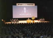 《16日に開港、1日27往復便が就航》 待望のテイクオフ―。構想から約20年の歳月を経て完成した神戸空港の開業を 祝う「開港記念式典」が12日、神戸市内のホテルで開催された。式典には主催 者である矢田立郎・神戸市長並びに井戸敏三・兵庫県知事、来賓の北側一雄・ 国土交通大臣、二階俊博・経済産業大臣はじめ関係者ら約1,500人が出席。挨 拶で矢田市長は、「神戸のみならず関西全体の活性化に貢献する」と期待を寄 せた。 《地方中枢空港として関西活性化への期待高まる》 記念式典は、午前の部と午後の部で行われ、午前の部は神戸市、兵庫県、神戸 商工会議所、神戸空港ターミナル(株)の主催で開かれ、初めに主催者を代表 して矢田市長、井戸知事らが挨拶を行った。矢田市長は、空港建設にあたり 「震災を乗り越え新しい神戸をつくる大きな都市基盤として整備を進めてき た」と経緯を振り返り、開港にあたっては「港とともに発展してきた神戸の交 流の歴史に空の港が加わり、新たな1ページが開かれようとしている」と期待 を寄せ、今後は「神戸のみなならず、関西全体の発展に貢献するものと確信す る」とし、利便性の高い空港を目指して努力していくと決意を語った。