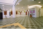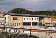 【写真上は香寺町立中央公民館、写真下は展示ホール】 これまで、社会教育活動推進のため、独自事業や自主活動グループの育成などを通じて町内全域にわたる活動 の拠点施設としての役割を担ってきた「香寺町中央公民館」は、1972年3月に香寺町行重333に完成したもの で、老朽化が進行するとともに、耐震構造上も問題があるとの指摘を受けていた。また、構造が古いことから 高齢者・障害者等の利用に不便をきたしていたし、狭隘だったために多様な講座などへの対応にも支障が生じ ていた。こうした背景の下、香寺町では公民館の建て替えを計画。これまでの公民館所在地から北へ約300mの 地点に位置する香寺町土師396の?新天地?に建設を進めた。 《生涯学習活動の新拠点》 隣接する香寺町総合公園との調和に留意するとともに、地形を生かした配置計画を施している「香寺町立中央 公民館」の構造規模は、鉄筋コンクリート造2階建て、延べ床面積1,790.26?。1階には多目的ホール、創造 室、展示ホールなど、2階には学習室、調理実習室、子育て学習センター、講座室などを機能的に配置してい る。 一方、町民生活の高度化、情報化、国際化に対応できる情報教育や視聴覚教育に必要な機能を備えた新 しい生涯学習の場の施工を担当し、高品質に完成させたのは(株)神崎組。上長伊代次所長をはじめとする同 社ならびに各協力会社の有能なスタッフが一丸となって安全第一に注目工事に取り組み、全工期無事故・無災 害のうちに多くの関係者や町民から寄せられていた全幅の信頼に応えた。 公民館新築工事のみならず、環境センターの新築工事、旧公民館の解体ならびに駐車場整備のための切土・盛 土工事や全体で約2万1,000?にもおよぶ広大な敷地整備が含まれていたその工事は、準備工事を経て昨年6 月から本格化。敷地内にあったゴミ収集施設の解体から着手し、基礎の地盤改良を7月初旬まで続けた。これ に引き続いて基礎工事を順調に進め、7月23日に基礎コンクリート、8月3日に土間コンクリートをそれぞれ 打設。また、1階躯体コンクリートについては、同月25日に打設を終えた。 2階の躯体コンクリートは、9月20日と26日の2回に分けて打設。打設ボリュームとの絡みのみならず、化粧 コンクリート打放し仕上げのために講じた措置で、打設方法や締め固め方法などについて事前検討を入念に加 えた上で着手。施工に当たっては、高性能減水剤を使用して高強度を確保した。 また、屋根にソーラーパネルを使用していたため、雨仕舞の収まりについても施工図段階から対応策を十分に 講じて品質の向上を図った。外構工事は、整備面積が広かったため、9月中旬からラップさせた内装に先立っ て8月末から着手。昨年の12月5日に引き渡しを無事に終えた。なお、環境センター新築工事は、7月13日か ら掘削を開始したのに続いて同月27日に基礎コンクリートを打設。この後、鉄骨建方などを経て9月27日に引 き渡しを行った。 《神崎組が高品質施工・前後期無災害も達成》 「頻繁に通る工事用車両に対しても、近隣からの理解と協力には大きなものがあった」(上長所長)ことか ら、円滑な工程を確保して工期内竣工を成し遂げた(株)神崎組では、安全管理活動も緻密に展開。墜落・転 落災害、重機災害、第三者災害の防止を重点項目として定め、毎月1回開催した災害防止協議会の中で注意事 項を徹底するなどした結果、7万時間におよぶ全工期無事故・無災害を達成して有終の美を飾った。