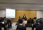 アシハラ氏は、手がけた集合住宅の事例をスクリーンで紹介しながら、居住空間のトータリティや、空間とア ートの関係などについて詳しく解説を加え、講演後には、参加者から寄せられた「高齢者への配慮は」「建材 としての木材の捉え方は」「スケルトンインフィルへの対応は」などの質問に丁寧に答えていた。