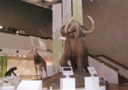 【写真上:1974年の会館以来展示されている「ナウマンゾウ」右と新たに展示された「ヤベオオツノジカ」】