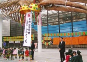 《山西館長らが祝う》 セレモニーは10時30分に山西館長の挨拶から始まった。山西館長は「様々なオープニングイベントを実施す る。市民の皆様にとってより親しみやすい博物館にしたい」と述べた。この後、山西館長ら関係者と鶴ヶ丘幼 稚園(阿倍野区)の園児たちの手によって、くす玉が開披されると、出席した園児たちの保護者や地元住民か ら大きな拍手が贈られた。