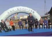 《北側国交相、藤本局長、太田知事らも出席》 9時に行われた富田林市の式典会場では、はじめに石川を美しくする市民運動協議会の仲谷修会長が「市民 による石川の清掃は今回で23回目を迎えた。市民の地道な取り組みと協力に感謝する。石川に親しみ憩いの 場にしようとする市民の心を一つにすれば、大きな力になって水質が改善され、また昔のような泳げる川が 戻ってくる」とあいさつした。 引き続いて北側大臣が、大和川水環境サミット(2005年3月5日)で語った「平城遷都1300年に当たる2010 年を目標としたBOD3?/L以下」の水質改善を改めて強調した後、「大和川再生に向けて、市民ととも に今後も頑張っていきたい」、また、石川の河川管理者である大阪府の太田知事が「1万8,000人が参加する 府内最大のクリーン作戦に成長してきた。石川や大和川が全国で1番きれいな川と言われるように」と、そ れぞれ新たな決意を語った。この後、地元の小中学生から高校生、市民団体、一般市民らが軍手やゴミ袋な どを関係者から受け取り、午前中、河川敷などで一斉清掃を展開した。 近畿地方整備局大和川河川事務所は「参加者が昨年を上回り、ゴミの回収が昨年に比べて減少したことは、 市民のモラル向上やPR効果が浸透してきた表れ」と評価している。なお、大和川・石川クリーン作戦が行 われた会場は、大和川流域の大阪市、堺市、松原市、八尾市、藤井寺市、柏原市の六会場と、石川流域など の羽曳野市、河内長野市、富田林市の3会場、計9会場。