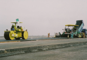 この後、着陸距離の長い大型機のために約100mにわたってコンクリート舗装された滑走路の北端部を訪れ た。さらに、誘導路では実際にロードローラーやタイヤローラーを使って締固め工事が行われている作業の ようすを見学した。今年1月13日に行われたアスファルトプラントの初出荷から本格化した滑走路の舗装工 事は、二月から三月のピーク時には一日に約300人の作業員、60〜80台のダンプを数えた。今後は基台の設置 や配管の敷設工事などが行われる。今回の滑走路・誘導路は、転圧締固め工法で造成された二期空港島地盤 の上に、アスファルトで舗装工事を行い、整備する。地盤の固さや耐久性を詳細に調査し、構造的に優れ、 経済的な断面になっている。施工手順は?資材仮置・運搬?プラント設置工事?セメント安定処理路盤工? アスフアルト安定処理路盤工?アスファルト舗装工ーというもの。設計の工夫で工期短縮とコスト縮減を実 現している。 2期事業は、一期空港島の西側に新たに約545haの埋立地を造り、そこに現在供用中の滑走路(3,500m)に 平行した新滑走路(4,000m)と関連する施設を整備するもの。新滑走路は二〇〇七年の供用を予定してお り、この運用に必要な平行誘導路、連絡誘導路、航空灯火などの施設を整備する。工事にあたっては「より 良く、より早く、より安く」を念頭に、安全で環境にやさしい空港造りを進めていく。なお、26日の日曜日 には一般の人たちを対象にした関西国際空港春休みイベント「みんなで歩こう!新滑走路」が行われ、親子 連れなど多数が参加し完成間近の滑走路をウォーキングした。