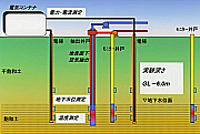 【上図:実験設備の断面図/下写真:淺沼組技術研究所敷地内での実験状況】