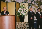 【写真上:挨拶す本庄、片山、福原各支部長(左から】
