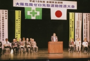 また、主催団体を代表して挨拶した社大阪労働基準連合会の倉内憲孝会長も「各災害防止団体が一丸となり、 実効ある安全活動を積極的に推進していきたい」と力強く決意を示した。 この後も大会では、太田房江・大阪府知事や関淳一・大阪市長らによる来賓祝辞、安全表彰の受賞者披露、大 阪労働局労働基準部の伊藤秀一・安全課長による基調講演「死亡労働災害防止強化月間の実施結果等につい て」、大阪大学大学院人間科学研究科の臼井伸之教授による特別講演「21世紀の労働安全を展望する―ヒュー マンファクターの視点から―」などが行われた。