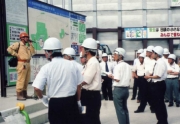 寺畑前川調節池整備工事・国内最大のオープンケーソン施工 (社)大阪建設業協会の土木委員会(友廣康二委員長)と大阪土木施工管理技 士会との共催による現場見学会が13日に開催され、兵庫県が洪水対策事業とし て建設中の「淀川水系寺畑前川調節池整備工事(第一期)」(施工=大林・鴻 池・大豊・新井特別JV)の現場を訪れた。 この現場見学会は、技術向上の一環として毎年2回行われているもので、今回 は会員企業の関係者ら約40人が参加。参加者は自動掘削揚土システムと自動沈 設管理システムによる国内最大の「自動化オープンケーソン工法」が採用さ れ、大口径・大深度のオープンケーソンが安全で確実に施工されているようす などを見て回った。当日は、現場事務所でまず主催者を代表して、土木委員会 の吉村寛部会長が参加者を前に「皆さんにとって有意義な見学会となるよう に」と挨拶。続いて、JVの大里秀俊工事長と前田知就・監理技術者による工 事概要の説明などが行われた。