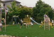 この「ハイブリッドターフPG」は、ゴムチップを使わずに砂を充填した芝丈の長い人工芝と弾性クッション 層で構成され、衝撃吸収性を大幅に改善したロングパイル人工芝。遊具下舗装材の性能は「臨界高さ」として 表され、この高さ以下からの落下であれば、脳に深刻な影響がないとされている。同製品の「臨界高さ」は 1.8mで、高い安全性が確保されている。 同社では、今回の加古川市以外にも住友ゴムグループ工場近隣の幼稚園や保育園に、はだしで遊べる園庭・遊 具下用舗装材の同製品を寄贈しているが、園関係者からは「子どもたちの遊び場の安全確保ができたうえ、屋 外で遊ぶ時間が増えてきているので体力増進にもつながる」等の声が寄せられている。