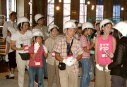 消防局庁舎建設にわくわく (社)大阪建設業協会(淺沼健一会長)主催の「親子現場見学会」が26日に開 催された。同協会広報委員会(河合次郎委員長)が企画したもので、今回は小 学校高学年の児童と保護者12組24名が参加し、清水・大本・栗本・中林特定J Vが大阪市で施工を進める「大阪市消防局庁舎(西消防署併設)建設工事現場 (大阪市西区九条南1−12)」を見学した。 見学会ではまず、主催者を代表し河合委員長が「普段見ることのできない現場 を見学して建設業というものを理解してもらい、できれば将来私達の仲間にな って下さい」と挨拶。この後、着工から山留め、地中障害撤去、杭、掘削、基 礎底盤配筋、地下躯体などの各工程の説明を三木正道所長から受けた後、ヘル メットを装着し現場内の1階、2階部分やクレーンでの吊り上げ作業を見て回 った。 同工事は、大阪市が消防局本部庁舎の耐震化及び、本部機能高度化を図ること を目的に消防局庁舎と西消防署併設の整備を進めているもので、2005年2月の 着工、2007年6月完成予定。RC一部S造地上八階建て、延べ面積約1万 7,358?の規模。屋上部分の鉄塔は七六?で、地上からの高さは119番に合わせ 119mという。基本設計は大阪市住宅局営繕部、実施設計・監理は安井建築設計 事務所。