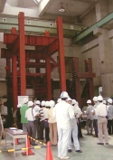 免震装置加力実験など、会員・学生ら約50人が参加 (社)日本建築学会(村上周三会長)の会員及び一般の学生らを対象にした研究所見学 会が3日、大阪府高槻市の「(株)淺沼組技術研究所」(福本昇所長)で開催され、参 加者は土の液状化模型実験や免震装置の加力実験などを見て回った。 この見学会は、今年4月に創立120周年を迎えた日本建築学会が、その記念事業の一 環として実施している研究所見学会事業に?淺沼組も協力、参画して行われたもので、 関西のゼネコンでは同社が初めてとなる。