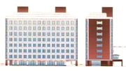 【写真下】奥村組東京本社ビル立面図と免震化位置