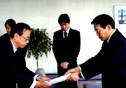 このため、同局ではそれぞれの事業場で自主的な労働災害防止対策をより一層促進させるため、死亡災害が多 発している業種の労働災害防止団体等の社大阪労働基準連合会、建設業労働災害防止協会大阪府支部、陸上貨 物運送事業労働災害防止協会大阪府支部の3団体に対して、緊急要請を行うことにしたもの。 当日、局長室で行われた要請の冒頭で挨拶した新島良夫局長は「各団体が自主的な労働災害防止活動に取り組 むとともに、一層の強化に努めて死亡災害ゼロを達成してほしい」と呼びかけた。 引き続き、新島局長が建災防大阪府支部の梅津豊副支部長ら3団体の代表それぞれに死亡労働災害防止対策の 強化を求めた要請書を交付した。 このうち、建災防大阪府支部には、死亡災害防止に係る大会の開催や建設現場パトロールの実施等により、安 全な作業手順の策定や墜落・転落災害防止措置の徹底、解体工事の際には指揮する者を定め、その者に直接作 業を指揮させることなどを要請している。 なお今回の要請書には、各団体の取り組みの実績について12月28日までに同局に報告することを盛り込んでい る。