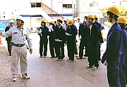 見学会では、初めに主催者を代表して吉田技監が挨拶。吉田技監は、「建築を学ぶ若い人達に実際の現場を見 てもらい思いを新たにしてほしい。めったにない機会であり、建築現場はいろんなものを組み合わせて物が造 られていくことを知り、将来の参考にしてほしい」と見学会の成果に期待を寄せた。 この後、事業概要や工事の説明を受け、担当者の案内により作業所内を見学。場内では屋上での防水作業や内 装工事などをつぶさに見て回り、特に内装工事では、各階毎に作業工程が違っていたため、内装が仕上がって いく様が見て取れ、また実際の専門的な作業を見ることができた。 同住宅野建て替え事業は、1959年から1961年に建設された既存住宅1,504戸を、地上11階から14階建ての高層 住宅に順次、建て替えるもので、既存住宅撤去跡地は活用用地として高度利用を図るもの。 現在は第1期として、見学会場となった第1工区と同区工に隣接して第2工区のRC造12階建てが現在工事中 で、今後は第六期まで計画され、合計11棟を建設する予定。第1工区棟は、2005年5月に着手され、2007年2 月の竣工予定。工事では約12万3,000時間の無事故・無災害記録を継続中。 大阪府建設業振興策研究会は、府内建設業の振興を図る目的で、業界が抱える課題を整理し、今後の在り方を 探るため2001年12月に大阪府の呼びかけで発足。その検討課題の1つが「優秀な人材確保と育成」であり、高 齢化が進む建設業にあって若年労働者の入職促進が求められている。 このため、建設技術者や業界に対するイメージアップ対策の一環として、建築を学ぶ工業高校生やハローワー クに訪れる求職者で建設業に関心のある者、高等職業技術専門学校生らを対象に現場見学会を実施したもの で、11月にも2回の見学会を予定している。 なお、研究会は大阪府住宅まちづくり部、契約局、(社)大阪建設業協会、(社)大阪府建団連、(社)大阪 電業協会、(社)大阪空気調和衛生工業協会、(社)大阪府中小建設業協会で構成される。