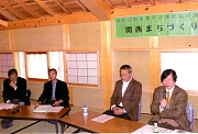富田林で記念シンポ 「寺内町まちづくりの展望」 全国各地でまちづくり活動の普及や支援、政策提言を行うNPO法人・日本都 市計画家協会(=JSURP、黒川洸会長)は19日、関西から都市計画の新し い試みや提案を発信したいという観点から、協会傘下に関西支部を発足させ た。支部長に選出された小林郁雄・まちづくり株式会社コー・プランのアドバ イ ザで神戸山手大学教授は、「自由な発想で独自のまちづくり政策を提案し たい」と決意を表明した。同日は、関西支部の設立を記念して木造二階建て瓦 葺きの「じないまち交流館」(富田林町九)で、寺内町を愛する関係者の方々 と共にシンポジウム(主催・同協会、後援・富田林市)が開かれた。 ※写真上:座論会のもよう ※写真下:寺内町