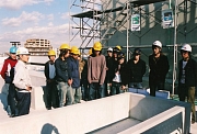 現場では、大成JVの柴田光男所長らスタッフが一行を出迎えた後、見学に先立ち事業と工事概要の説明が行 われた。この中で挨拶に立った吉田技監は「人材確保と育成の観点から建築を学ぶ若い人達に現場を見てほし い」と見学会開催の趣旨を述べ、「建築物は多くの人達が集まって造っていることや専門技術を見てもらい、 建築に対する関心と理解を深めてほしい」と呼びかけた。 次いで、JV並びに設備担当者らの案内により作業所内を見学。更正施設では病室からリハビリなどの各エリ アを、支援施設では通常は体育館として、災害時に患者収容場所となる大空間のフロアなどをつぶさに見て回 り、また現在は仕上げ工事となっているため、天井や床などの内装工事での専門工程の作業を見学することも できた。 見学終了後には活発な質疑応答が行われ、「設計図書の作成にかかる時間は」や「S造とRC造の使い分けの 違い」、「地震に対する建物の備えは」などの質問に対し各担当者が丁寧に答えていた。 建物は、総合医療センターに隣接する敷地4万6,546.07?に、RC造1部S造3階建て塔屋一階、建築面積 3,855.003?、延床面積1万0,079.288?の規模で建設。竣工は2007年2月20日の予定で、工事ではこれまで、 約17万時間にわたり無事故・無災害を継続中。 大阪府建設業振興策研究会は、大阪府と大阪建設業協会など在阪の建設5団体で構成。府内の建設業に係る諸 問題についてを検討しており、その重要課題に「優秀な人材の確保と育成」を上げ、業界イメージアップの一 環として現場見学会を実施しているもので、今後も実施していきたいとしている。
