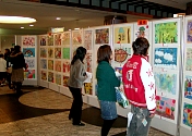 ※写真上:表彰式のようす ※写真下:児童画展会場