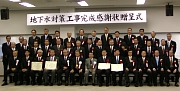 排水ホンプ・護岸かさ上げ・止水壁 記念銘板除幕と感謝状贈呈 2000年から関西国際空港1期空港島で実施されていた地下水対策事業が完成し 20日、完成式典が開催され、村山敦・関西国際空港会社社長による「完成記念 銘板除幕式」ならびに工事関係者に対する「地下水対策工事完成感謝状贈呈 式」が執り行われた。同事業は、集中豪雨ならびに高潮対策、また高潮位によ る地下水位上昇への3つの取り組みとして約400億円を投じ、雨水用排水ポン プ設置、護岸かさ上げ、止水壁の設置を進めていたもので、事業の完成によ り、海上空港の宿命とも言える自然災害並びに沈下にも強い空港へ、その効果 が着実に発揮されている。 ※写真上:挨拶する村山社長 ※写真下:村山社長を囲んでの記念撮影