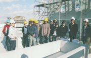 【写真】:熱心に作業所内を見学して回る学生達 次いで、JV並びに設備担当者らの案内により作業所内を見学。更正施設では病室からリハビリなどの各エリ アを、支援施設では通常は体育館として、災害時に患者収容場所となる大空間のフロアなどをつぶさに見て回 り、また現在は仕上げ工事となっているため、天井や床などの内装工事での専門工程の作業を見学することも できた。 見学終了後には活発な質疑応答が行われ、「設計図書の作成にかかる時間は」や「S造とRC造の使い分けの 違い」、「地震に対する建物の備えは」などの質問に対し各担当者が丁寧に答えていた。 建物は、総合医療センターに隣接する敷地46,546.07?に、RC造一部S造3階建て塔屋1階、建築面積 3,855.003?、延床面積10,079.288?の規模で建設。竣工は平成19年2月20日の予定で、工事ではこれ まで、約17万時間にわたり無事故・無災害を継続中。 大阪府建設業振興策研究会は、大阪府と大阪建設業協会など在阪の建設5団体で構成。府内の建設業に係る諸 問題についてを検討しており、その重要課題に「優秀な人材の確保と育成」を上げ、業界イメージアップの一 環として現場見学会を実施しているもので、今後も実施していきたいとしている。