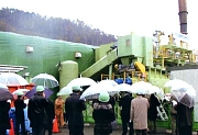 午前中は、この大阪事業所を見学。まず見学に先立ち、職員から西館(S造五階建て、延べ1万7,600?)と 東館(同、延べ7,650?)の施設内容、設備、処理工程などについて詳しく説明を受けた後、職員の誘導によ って施設内を見て回った。西館ではPCB処理事業に関して情報を積極的に公開している様子や24時間体制で 監視している中央制御室、切断・粉砕室、判定洗浄室など、また、東館では確実に処理が済みPCBを分解し て取り除かれたことを確認する分析室、PCB分解処理の流れを監視している反応セクション室などを見学。 卒業判定基準では、職員が「最新の技術により0・5PPm未満、世界で最も厳しい基準を設けて処理してい ます」と答えていた。 大阪事務所には、現在、近畿2府4県の8割からPCB処理を依頼する登録があるという。処理方法は大阪市 内を優先的(2年間)に実施。その後、重点地域を決めて順次処理を進め、2016年7月に事業を完了させたい 考えだ。 〜鴻池組「豊能郡美化センター汚染土壌浄化対策事業」のダイオキシン類無害化処理も〜 午後からは、大阪府豊能郡能勢町に移動。鴻池組が実施している豊能郡美化センター汚染土壌浄化対策事業を 見学した。豊能郡美化センターは1988年4月に運転開始されたが、1997年6月に能勢町のごみ焼却施設からダ イオキシン類が発生。大きな社会問題となった。 鴻池組が同汚染土壌浄化対策事業として導入している工法は、「TPS+ジオメルト工法」。この経緯は「溶 融固化法(ジオメルト工法)」と「アルカリ触媒化学分解法(BCD工法)」の二技術が公募の中から選定さ れ、2002年から2003年にかけて現地調査を実施。さらに16年には実用規模の「間接熱脱着工法(TPS工法) とジオメルト工法」の処理施設を現地に設置し、約400トンのダイオキシン類汚染土壌の無害化処理の実証調 査を行った。この結果を参考にダイオキシン類汚染土壌浄化技術検討委員会で「TPS+ジオメルト工法」が 望ましいとされ、2005年8月から汚染土壌の浄化対策工事を実施しているもの。TPS処理は、汚染土壌を間 接的に700度に加熱し、土壌中の濃縮汚染物を気化して分離した後、揮発したガスを冷却して汚染物を回収す る工法。ジオメルト処理はTPS処理で濃縮された汚染物を1,600から2,000度のジュール熱で電気融解して無 害化するもの。 見学では、能勢土壌処理工事事務所で高松順一所長がこれらの施設の内容、浄化土壌処理フロー、TPS処理 について詳しく解説。その後、実際、汚染土壌の掘削現場・運搬やTPS処理施設などをつぶさに見て回っ た。 同事業の発注者は、豊能郡環境施設組合。汚染土壌処理量は、埋め立て保管場所約7,500トン、コンクリート プール保管場所約1,500トンの計約9,000トン。年明けからジオメルト工法を設置する方針。事業費は約18億 円。