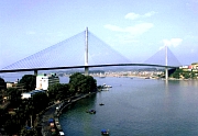 世界最長のメインスパン持つ 一面吊りPC斜張橋 清水建設(株)と三井住友建設(株)の共同企業体が、ベトナム・ハロン湾で 施工していた「バイチャイ橋」(橋長903m)がこのほど完成し、供用を開始 した。 ※写真:バイチャイ橋全景