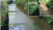 【写真】アッシドガードによる排水路補修 (右上は補修前) 通常のセメントモルタルは、酸性環境下ではセメント中のカルシウム分が溶け出し、数年で強度が急激に低下 する。このため、硫酸が発生する下水施設などのセメントコンクリート構造物には、腐食対策が必要となる。 しかし、従来の樹脂系等の耐酸性材料は、コストがセメントモルタルの数10倍と極端に高く、また流動性や 強酸性水中での硬化性に乏しいため、現場施工には向かなかった。 アシッドガードの特徴は ?通常のセメントモルタルに比べて3倍以上の耐酸性 ?「現場練り」が可能なほか、強酸性の水中でも固まるなど優れた施工性 ?従来の耐酸性材料に比べて五分の一以下の材料コストなど。 酸による腐食・劣化が心配される施設などで、通常のセメント系材料に代えて使用し、構造物の耐久性を向上 させて長寿命化することで、ライフサイクルコストの低減を実現するもの。 今回アシッドガードが初適用された現場は、秋田県の休廃止鉱山たい積場内の水路補修工事。適用現場では、 アシッドガードを使って劣化した水路の底板部分40?を補修し、数日後にはPH2・5の酸性水に耐えられ る水路として使用が可能となった。 なお、今回の補修部分には劣化計測用のメジャーを埋め込んでおり、清水建設らでは今後、長期にわたって状 態を把握していく考え。