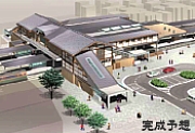 また、2008年度の完成に向けて進めている工事についても、駅舎機能を仮駅舎に移転して4月から既存駅舎を 撤去し、自由通路、橋上駅舎の建設工事を開始した。設計はジェイアール西日本コンサルタンツ、施工は大鉄 工業が担当。 今回のデザインのコンセプトは「歴史と自然あふれる嵯峨野の風景となる駅」。JR嵯峨嵐山駅周辺は、日本 有数の観光地であり、自然に囲まれた中に昔ながらの建築物が建ち並ぶという風景が特徴となっている。この ため、新たな嵯峨嵐山駅がこの「風景」のひとつとなるよう、地域にふさわしいデザインとしている。具体的 には、天龍寺や大覚寺などの歴史と伝統ある寺社建築の象徴である切妻屋根を正面に配し、白壁や格子、木組 み(柱)を割り付けるなど、「和」を基調とした建物となっている。 自由通路は延長85m、幅員5mで、エスカレーター2基、エレベーター2基を設置。工事費は7億9,800万 円。また、橋上駅舎(事業主体はJR西日本)は延べ床面積930?で、エスカレーター2基、エレベーター2 基、トイレ一カ所を設置する。工事費は10億6,100万円。 京都市 http://www.city.kyoto.jp/koho/ind_h.htm