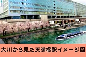 駅ビル地下街もリニューアル 京阪電鉄(株)(佐藤茂雄社長)では、天満橋駅を改造し、大川の水上ター ミナルと直結する「川に顔を向けた駅づくり」に着手する。大阪府が進める 八軒家浜整備と連動し、水都再生にも寄与するもので、併せて駅ビルの一部 のリニューアル工事も実施する。この計画は、水都再生を目指して大阪府が 進める「八軒家浜水陸交通ターミナル整備」では、天満橋駅北側の大川沿い に水上バス等の船着場や展望デッキなどを整備することから、その一環とし て中之島線の分岐部となる天満橋駅を改造し、水上交通と陸上交通の結節点 として水都大阪のシンボルとするもの。
