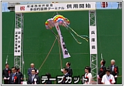引き続き挨拶に立った冬柴大臣は、物流の98%は海上であり、「安全な海上輸送体系の構築は我が国の生命 線で、拠点となる港湾機能強化は喫緊の課題だ」とし、ターミナルの供用について、「大阪湾の中央に位置 し臨海部の経済活動を支える拠点として、また大阪湾全体の機能強化に寄与してほしい」と期待を寄せた。 次いで、尼崎市の白井文市長らが祝辞を述べた後、テープカットが行われた。テープカットでは、冬柴大臣 はじめ国交相と兵庫県、地元代表者らが紅白のテープにハサミを入れるとクス玉が開披され、見守っていた 出席者から大きな拍手が湧き起こった。 尼崎西宮芦屋港尼崎地区多目的国際ターミナル(東海岸町沖四号岸壁)は、同港では初めてとなる水深12m 岸壁として、3万トン級船舶への対応を可能としたもの。今回概成したのは一バース延長240m、エプロン幅 20mのもの。計画では、工事中の耐震強化岸壁との連続二バースとし、埠頭用地や航路泊地などを整備す る。 同地区は、フェニックス事業用地を活用したもので、地区にはダイハツ工業(株)の尼崎物流センターが進 出しており、今回の初荷では、同社の自動車が積み込まれた。