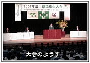 (株)竹中工務店大阪本店(中嶋啓吾本店長)は6月29日、大阪市中央区の 御堂会館で大阪本店安全衛生協力会(深阪好孝会長)との共催による「2007 年度安全衛生大会」を開催した。大会には、中嶋本店長はじめ協力会各社代 表ら約1,150名が参加し、労働災害絶滅への決意を新たにした。 大会では、物故者への黙祷、安全表彰に続き、近畿四国地区安全衛生管理委 員長の中嶋本店長が挨拶。「安全の確保なしに企業の存続はありえない。災 害要因の分析に基づいた対策を実践し、全力で再発を防止してほしい」と し、そのために「この大会を契機に、決意を新たに全作業員が一体となり、 安全について本気で考え、安全衛生活動に対するより一層の取り組みを行っ てほしい」と呼びかけた。 続いて、安全衛生管理中央委員長である渡邊暉生副社長が「一作業所単位で はなく、常に企業全体として、組織のベクトルを自覚して行動してほしい。 幹部の確固たる取組方針、作業所の活動、内勤の支援があって初めて安全衛 生活動が成立するが、過去の事例をみると、それが生きた活動となっている のか、危惧している」と指摘、「慣れ、油断、不注意、近道など、我々が持 つ無意識の行動の特性を矯正し、危険の連鎖を断ち切ってほしい」と要請し たほか、深阪会長が「心に響くリスクアセスメントを積極的に推進し、安全 職場の確立に向け、全作業所の協力をお願いする」と話した。