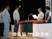 を述べた。 一方、安全成績については昨年の反省を踏まえながら「改めて皆さんとともに、もう二度と重篤災害は起こさ ないとの誓いを新たにしたいと思う」と決意を示した。 そして、菅沼社長は「全ては安全・品質から」の今年度の会社方針のもと「決めたことは確実に守る」、「は じめに確認、終わりに確認」の2点の徹底を要望し、無事故・無災害及びクレームゼロの実現に向け、より一 層の安全・品質管理体制の確立を呼びかけた。 引き続き、来賓を代表して大阪西労働基準監督署の森下芳光署長が挨拶し、大阪府下の労働災害の発生状況な どを説明するとともに、リスクアセスメントの実施など現場における着実な安全管理活動の推進を要望した。 この後も大会では、優良協力会社表彰や安全表彰、安全宣言、安全品質管理活動報告、災害事例発表、モデル 現場活動報告などが行われ、大会を実りあるものとするとともに、参加者は安全及び品質管理に対する決意を 新たにした。