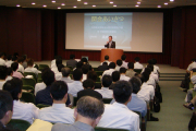 最初に「事故の現状とその対策について」をテーマとする講演を行った近畿地方整備局企画部技術調査課の 井筒由幸課長補佐は、近畿管内での事故データベースに基づいた分析を加えながらその状況を説明したほか、 実際の事例に触れ、その原因と対策法などを解説し「事故防止に求められるのは知識と意識。 どちらが欠けても成し得ない。これからが夏本番で現場は過酷な状況となるが、万全の安全対策と健康管理を 行って欲しい」と注意を呼びかけた。 このほかの項目と講師は次の通り。 ▽「通信設備(ケーブル)の事故防止について他」?NTT西日本関西設備部サービスマネジメント部門アク セス設備運営センターアクセス運営担当・東明宏主査 ▽「上水管路の保全について」大阪市水道局工務部西部工事事務所・山下匠担当係長(管路保全) ▽静止画ビデオ「地下埋設物の事故を防ごう」5団体合同安全公害対策本部作成 ▽「下水道管渠施設の保全について」大阪市建設局南部下水道管理事務所・早田順一副参事兼担当係長 ▽「電気設備の事故を防ごう」関西電力?大阪北電力所野江電力システムセンター(地中送電係)・兒玉淳係 長 ▽「ガス導管の事故防止について」大阪ガス?導管事業部大阪導管部保全チーム他第二グループ・辻理司チー フ他3名 ▽「公衆災害防止のための取り組み」西尾レントオール?技術開発課・藤田全彦課長 ▽「現場における地下埋設物の安全管理の実体験について」大成・戸田・鉄建・熊谷特定JV中之島新