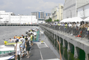 □□□ コンクリートカヌー大会 大学・高校チームらが参加 □□□ (社)土木学会関西支部(嘉門雅史支部長)と近畿高校土木会の共催による 「コンクリートカヌー競技大会」が25日、神戸市兵庫区の兵庫運河で開催さ れた。同支部創立80周年記念行事の一環として実施されたもので、高校や大 学、団体などから41チームが参加、手製カヌーによる熱戦が繰り広げられ た。 このイベントは、通常のカヌーの材料にならないコンクリートという素材を使 用して、手造りによりカヌーを製作し、土木工学の技術力やもの創りの魅力を 広く一般の方々に理解して貰うとともに、土木工学を学ぶ学生や市民らが発想 力と想像力を競うことを目的としたもの。 昨年の土木学会全国大会で実施し、好評を得たことから今回、支部80周年記 念行事と併せ開催された。会場は浜山小学校と兵庫運河で行われ、大会は神戸 市が後援したほか、運営には、地元の浜山地区の自治会も全面的に協力した。