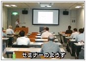 セミナーでは、3氏による講演が行われた。まず、水野稔・大阪大学名誉教授は「大阪のヒートアイランド 現状と対策」をテーマに、地球温暖化問題とヒートアイランド問題について話を進めた。水野名誉教授は、 ここ50年間、日平均気温が大阪市で1.5℃上昇、ヒートアイランド現象が見られる地域も拡張しているとし、 「ヒートアイランドの原因は熱代謝を無視した都市づくりにあり、対策として自然の冷却効果の活用をベー スに、人工的にそれを補強するべき」と話した。 また現状の温暖化対応技術評価については「今までは科学的興味の対象であり、シビアな評価は必要なかっ た。しかし、今後は多くの分野が関与すべき対策となっていて、科学的・定量的評価が必要」とし、善意の 自主行動型の今までの温暖化対策計画に関し「もはやそんな悠長なもので解決できる問題ではない。重点投 資型技術情報が必須」と指摘、そのためには「他分野技術との相互比較のためのプラットフォーム構築を」 とし、大阪の平均気温低下のために「誰が何をすべきかを明確にし、目標に応じた具体的定量的計画づくり が求められている」と持論を展開した。 続いて、(株)いけうち国内営業本部の西恭司氏の「ヒートアイランド対策におけるわが社の取り組み」で は、同社が開発した涼霧による冷房システムを紹介。微細な水滴を空気中に噴霧し、人やモノを濡らすこと なく冷却できる同システムは省エネに優れ、数多くの事例を有していると言い、西氏は首都圏や関西圏、地 方での事例を実際の映像を交えながら解説した。 また、池上理事長の「生命体利用都市大阪モデル〜デザイナーの立場から〜」では、大阪の都市近郊にある 自然、海に着目した提案をまず映像で紹介した後、「デザイナーの立場でまず仮説をつくり、推測、憶測の 中で創造力を働かし先行して実験を行い、その中で現状が把握でき、何をすべきなのか、社会が求めている 問題を克服できるのではないか」と自らの考えを述べ、2003年から実施している既存都市・近郊自然の循環 型再生大阪モデルの研究報告などを行った。この中で池上理事長は「世界に向けて、大阪から。行政や企業 とうまくタイアップし、戦略を練りたい」と述べ、最後に「自分の子供や孫、次の世代のためにみんなが手 を携え、やさしく社会を変えていきたい」と講演を締めくくった。