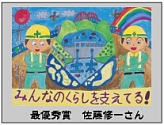 (社)土木学会関西支部が募集していた「土木の日ポスター」の最優秀賞 は、岡山市立大野小学校3年の佐藤修一さんが受賞した。今年は「こんなと ころに土木発見!! みんなのくらしを支えてる 」をテーマに、6月1日 から9月7日まで募集。 子ども部門205件の中から佐藤さんのポスターが最優秀作品に選ばれた。ま た、一般部門は127件の応募があり、件数は過去最高を記録した。表彰式には 11月10日に神戸で開かれた「土木の日」コア行事の中で行われ、最優秀賞の ほか一般部門の入選者に対して同関西支部から表彰状が手渡された。