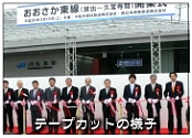 鉄道輸送による広域ネットワークの形成を目指す「おおさか東線」(放出か ら久宝寺間約9.2?)の開業を祝う式典が15日、沿線各駅で開催され、このう ちJR長瀬駅では、冬柴鐵三・国道交通大臣はじめ、関係者らが出席しての テープカットと、山崎正夫・西日本旅客鉄道社長及び、施工各社の代表らに よる修祓式が執り行われた。 8時40分からの修祓式では、厳かに神事が進む中、山崎社長と大阪外環状鉄 道?の大林祥泰社長に続き、工事施工を担当した施工12社と設備関係会社の 代表らが神前に玉串を捧げ、工事竣工に対する御礼と今後の運行業務の無 事・安全を祈願した。 引き続き、駅前広場で開業を祝うテープカットとクス玉開披が行われた。テ ープカットでは、冬柴大臣はじめ、山崎、大林両社長、橋下徹・大阪府知 事、平松邦夫・大阪市長、並びに東大阪、八尾、吹田の各市長と市会議長ら 14名が紅白のテープに鋏を入れ、開業を祝い合った。 この後、大阪市中央区の松下IMPホールで開業式典が開催されたほか、放 出、久宝寺、奈良の各駅で出発式、高井田中央、JR河内永和、JR俊徳 道、JR長瀬、新加美では新駅開業セレモニーが実施され、それぞれテープ カットなどが行われた。
