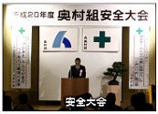 株)奥村組(奥村太加典社長)の2008年度安全大会が3日、大阪市内のホテ ルで開催された。大会には、奥村社長はじめ同社役職員及び、協力会各社の 代表ら約450人が参加し、災害絶滅に向けての決意を新たにした。 大会では初めに奥村社長が挨拶。奥村社長は、経済の先行き不安に加え、建 設業を取り巻く環境は依然として厳しいとしながら、「いかなる逆境にあっ ても、労働者の安全確保はすべてに最優先し取り組まなければならない」と 強調、今年度は墜落・転落災害防止を中心に活動を展開するとし、「第一線 の職員や職長が模範を示し、現場全体の安全意識の高揚に取り組み、支店幹 部も積極的に工事所に足を運び点検をしてほしい」と、一層の努力を呼びか けた。 次いで、安全衛生協力会の平見殖会長が、昨年の災害について「繰り返し型 事故が殆どで過去の教訓が活かされていない」とし、リスクアセスメントに よる安全活動の重要性を指摘した。今年度は、本社の活動方針に基づきなが ら「現場担当者と力を合わせ、一つ一つ実践し、快適な職場づくりを目指 し、個々の現場で災害ゼロと危険ゼロを達成しよう」との決意を示した。 大会ではこの後、昨年度の安全活動に功績のあった工事所や個人などに対す る安全表彰と安全宣言などが行われた。