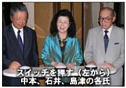 ライトアップ点灯式を開催 西梅田の夜を照らすー。サンケイビル「ブリーゼタワー」の竣工式に先立ち 4日、ビルをライトアップする点灯式が行われた。点灯式には、サンケイビ ル(株)の中本逸郎・代表取締役社長、(株)島津商会の島津禮次・代表取 締役、並びにビルの照明を手掛けた照明デザイナーの石井幹子さんらが出席 し、夜空にくっきりとビルの姿を浮かび上がらせた。 点灯式では、初めに石井さんが、これまで花博でのパビリオンから、御堂筋 や大阪城、中之島公会堂など、大阪のランドーマークとなる仕事を手掛けて きたが、「今回も大阪の新しいランドーマークとしたい」と述べ、この仕事 への参画を光栄に思うとし、「これまでのように、大阪の人にこの光が愛さ れ、大阪が元気になるよう光のメッセージが届くことを願う」と挨拶した。 次いで、中本社長と島津取締役、石井さんの三氏による点灯セレモニーが行 われ、カウントダウンとともに19時30分にスイッチが押されると、ブリーゼ タワーの壁面に「OSAKA GENKI」の文字が浮かび上がり、見守っ ていた出席者から大きな拍手が沸き起こった。