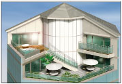 60度自由に回転する家(Dio−ARC、ディオアーキ)の世界展開を目的 に今年9月、設立された(株)Dio−X(ディオックス、本社=名古屋市 西区、早川延幸社長)では、会社設立を記念し、ディオアーキのユニークな 活用アイデアを一般募集している。 ディオアーキは、回転する躯体の構造部に特許技術を採用しているもので、 2005年に日本及び中国で特許申請済み。特許技術により、建築物が回転する 際の外気流入などの根源的な課題が解決できるといい、2009年内には中国上 海の関連会社で建設される予定となっている。
